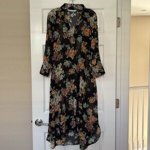 Zara Multi Color Floral Sheer Dress/ Topper Buttoned with 3/4 Sleeves- XS
