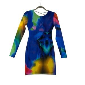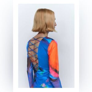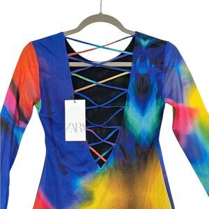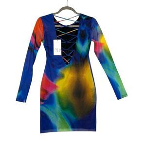 Zara Multi Color Tulle Long Sleeve Mini Dress | Size S
