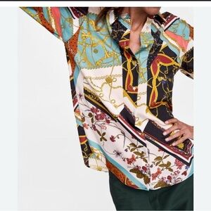 Zara Multicolor Chain Print Blouse size S