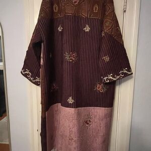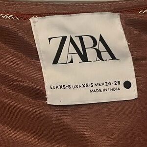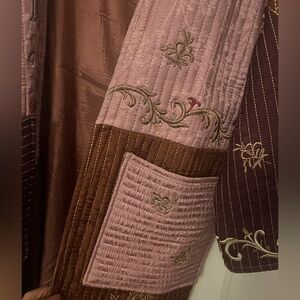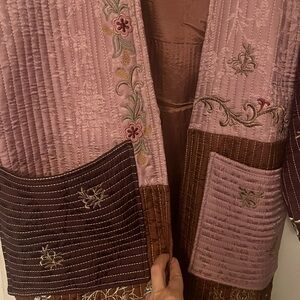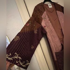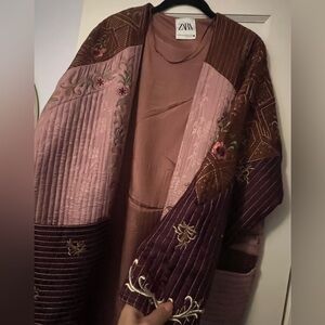Stylish Zara quilted coat with gorgeous intricate embroidery. Features a mix of pink and brown tones. Perfect for layering.