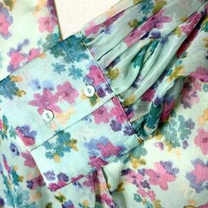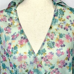 Chic floral blouse with vibrant colors. Perfect for any occasion. Pit to pit 22” Length 17”