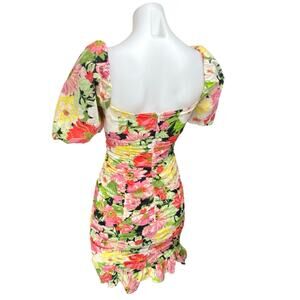Zara Women's Multicolor Floral Short Puff Sleeve Ruffle Ruched Sweetheart Neck Back Zip Mini Bodycon Dress Size XS