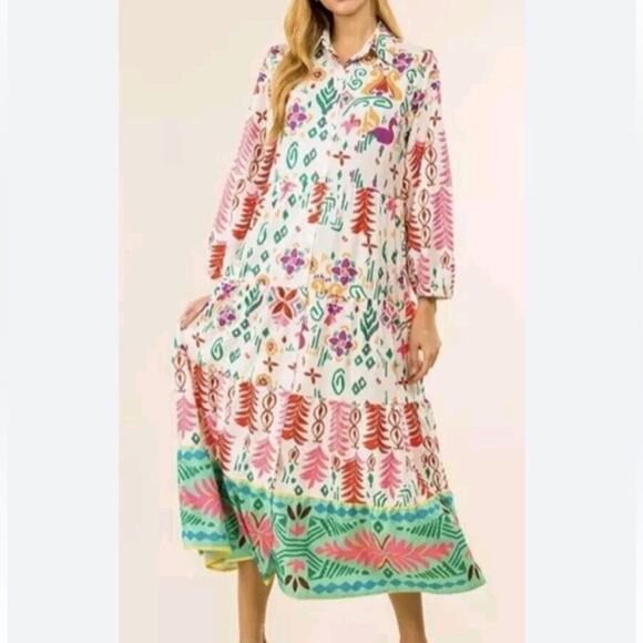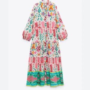 Zara Multicolor Otomi Floral Print Oversized Shirt Dress