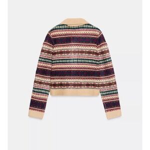 Chic Zara cardigan with a vibrant pattern. Features a button-up front and cozy design. Ideal for layering. Excellent condition, only wore once