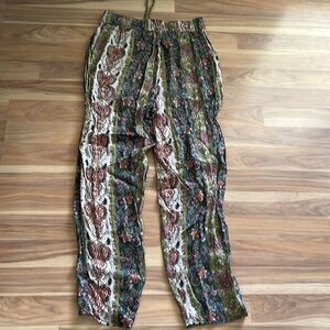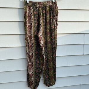 Vibrant multicolor pants with intricate patterns. Comfortable fit. Perfect for casual outings.