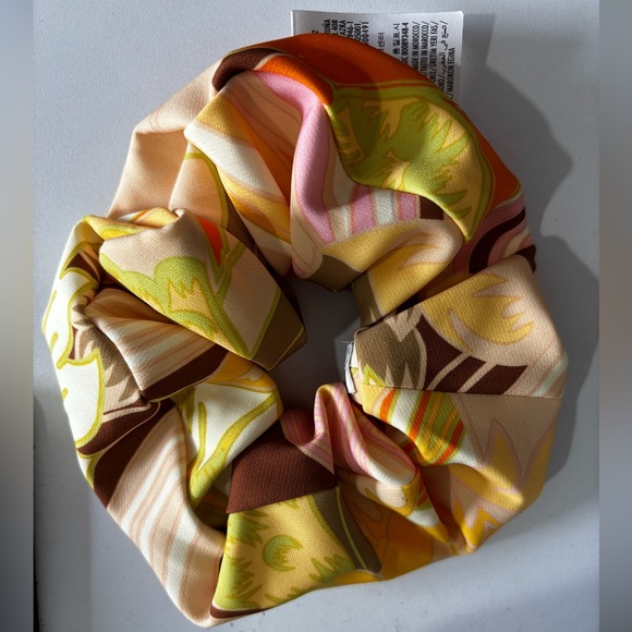 Stylish scrunchie with vibrant patterns. Perfect for adding flair to any hairstyle.