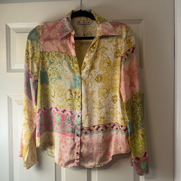 Stylish shirt with pink, yellow, green, and cream patterns. Ideal for a standout look. Versace Inspired pattern