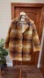 Cozy coat with a plaid pattern. Features shades of brown, tan, and yellow. Perfect for chilly days.
