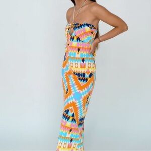Zara Multicolor Printed Geometric Halter Neck Midi Dress NWOT
