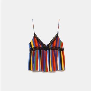 Zara Multicolor Rainbow Stripe Lace V-neck Spaghetti Strap Crop Cami Tank Top S