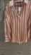 Chic blouse with red, green, and white stripes. Ideal for versatile styling.