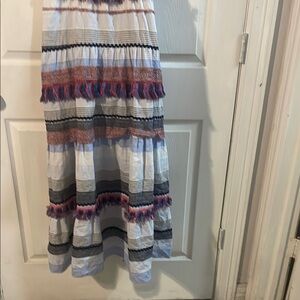 Chic maxi dress with multicolor stripes. Features a sleeveless design. Ideal for casual wear.