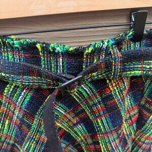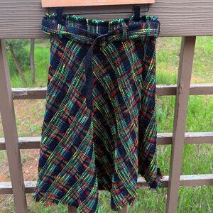 Zara Multicolor Tweed A-line Midi Skirt with Belt