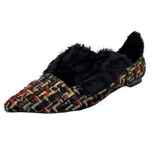 Zara Multicolor Tweed Pointed Flats Black Frayed Bow Women's Size EU 37/US 6.5