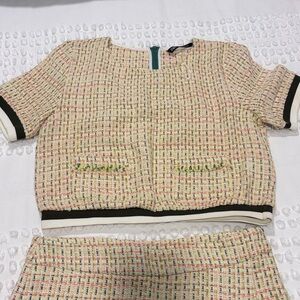 Elegant tweed set with vibrant colors. Includes top and skort Ideal for chic occasions. Both items are a size medium. Do not want to split the pair as it looks so great together