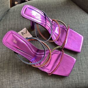 Zara Multicolor metallic purple Strappy women’s colorful Heels size us 8 NWT fun