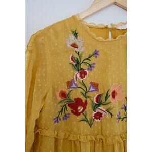 Zara Mustard Yellow Embroidered Long Sleeve Blouse Size Medium