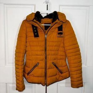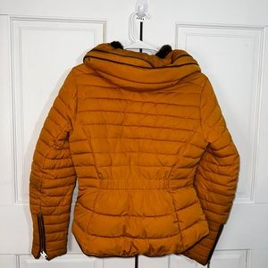 Zara Basic Outerwear Anorak Hooded Winter Puffer Belted Collar Jacket & Coat Mustard Yellow - Size S Gently used, excellent pre-owned condition, please see all photos for item details.