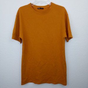 Zara Mustard Yellow Rolled Sleeve T Shirt Dress