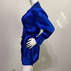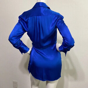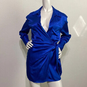 Zara "NEW" Blue Long Sleeve V-Neck Satiny Self Tie Wrap Mini Dress Size Small