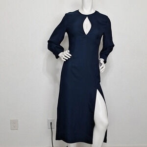 Zara "NEW" Dark Blue Romantic Goth Front Slit Witchy Cocktail Midi Dress Size S