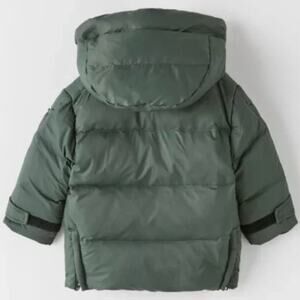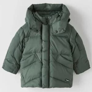 Zara NEW Kids Down Puffer Parka Hooded Coat Size 4-5 Boy Girl Unisex Olive Green