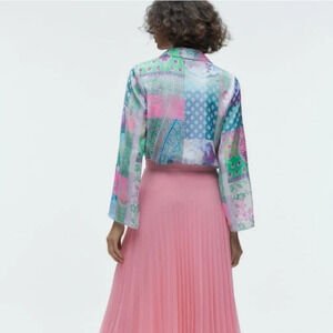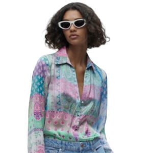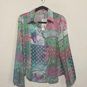 Zara NEW Patchwork Print Long Sleeve Shirt Size M