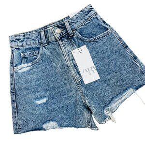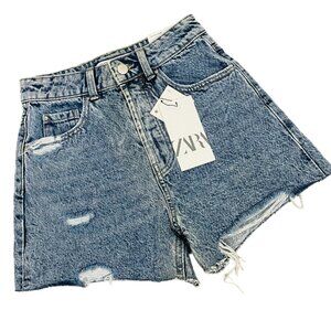 Zara NEW Women’s High Rise Rigid Distressed Shorts Size 2
