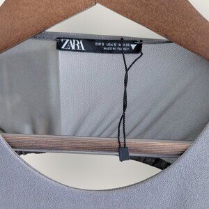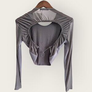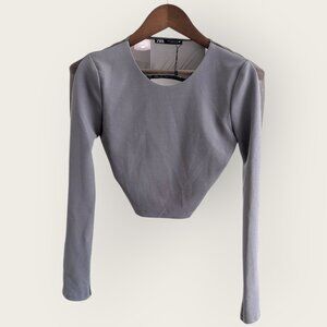 Zara Size Small Gray Open Back Drawstring Long Sleeve with Sheer Mesh Crop Top. New Never worn.