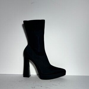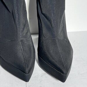Zara NWOT Stretch Blk Fabric Platform Pointed Toe High Heel Booties Sz. 8 8.5
