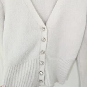 Zara NWOT super soft white sweater gorgeous Sparkly Diamond Buttons Size Medium