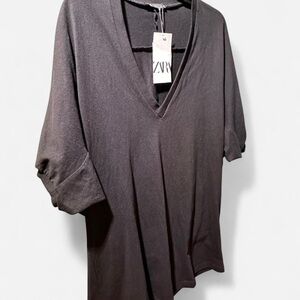 Chic black dress with puff sleeves. V-neck design by Zara. New with tags size medium.