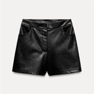 Zara NWT Black Faux Leather High Waist Shorts, M