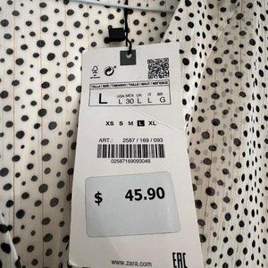 Zara, NWT, Blouse, sheer with black dots and gold thread and buttons Cream