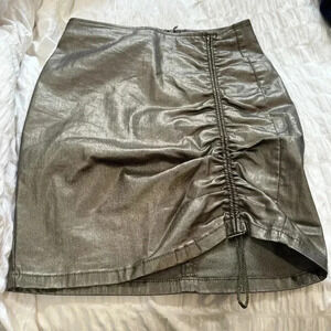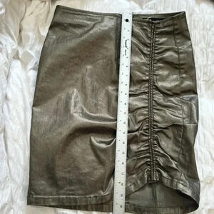 Zara NWT Coated Metallic Drawstring Ruched Pencil Mini Skirt Size M