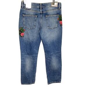 Zara NWT High Rise Floral Embroidered Sequined Distressed Boyfriend Jeans Size 2