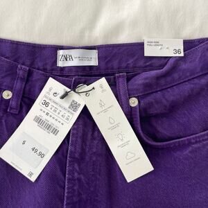Zara NWT High-Rise Full Length Wide Leg Raw Hem Purple Denim Jeans, Size 4