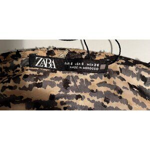 Zara NWT Leopard Print MINI Dress V Neck Sheer Size Small Animal Print Cheetah