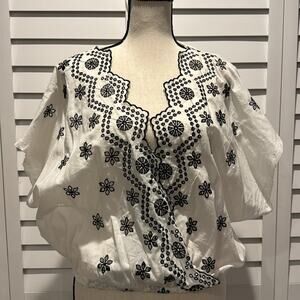 Zara NWT Oversized Embroidered Top with elastic bottom.