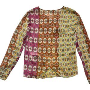Zara Multicolor Printed Blouse With Bow Tie and Beaded Tassels