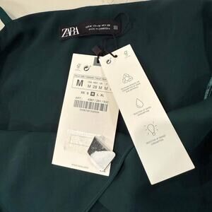 Zara NWT Satin Lace Asymmetrical Midi Slip Dress Womens Medium EmeraldGreen Sexy