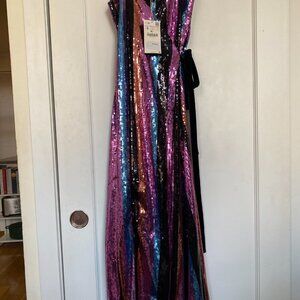 New with Tags! Fabulous disco-inspired wrap cocktail dress. True wrap dress with adjustable tie at the waist.