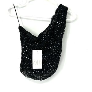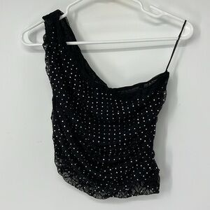 Zara NWT jewels one shoulder cropped top large pit to pit measures 14.5 inches. Pit to hem measure 11 inches