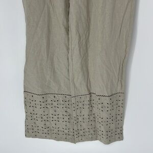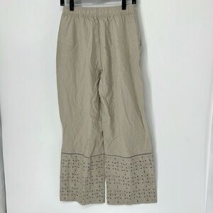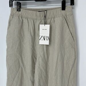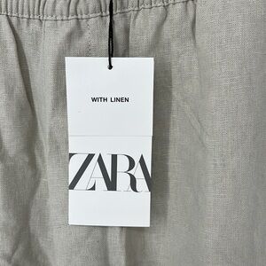 Zara NWT linen blend pants women’s XS wide leg waistband lying flat measures 13.5 inches. Rise measures 11 inches. Inseam measures 28 inches