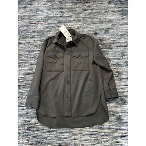 Zara NWT oversized relaxed fit button front grey shirt size XS. Thick fabric.