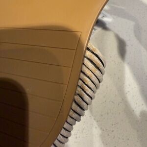 New with tags NWT women’s size EU 39. Small cushion for feet on flat sandal. Never worn- only tried on in the retail store in Boston. On the bottom it looks like the glue of the sandal stained the fabric (but no one will notice that- just wanted to mention it - see pictures).