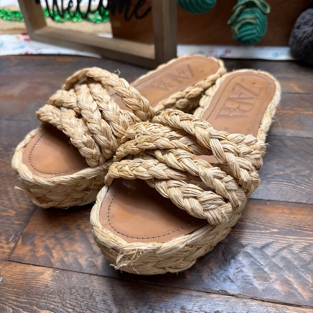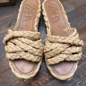 Zara Natural Raffia Platform Wedge Sandals Women's 39 Or US 8.5 GUC ZARA summer