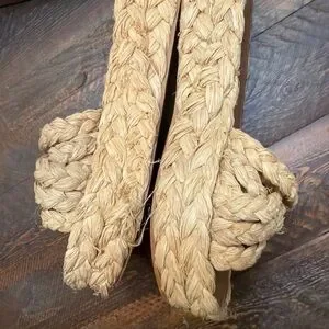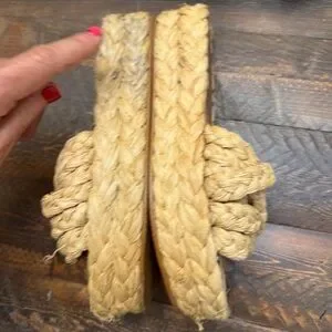 These Zara Natural Raffia Platform Wedge Sandals are perfect for summer days with their solid beige color, slip-on closure, and comfortable mid-height wedge heel. The open toe and strappy design add a stylish touch, while the synthetic upper material provides durability. These sandals are ideal for nature-inspired themes, making them a great addition to any summer wardrobe.