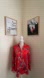 Vibrant red jacket with nautical print. Features bold patterns and classic collar. Ideal for a stylish look. New with out tag