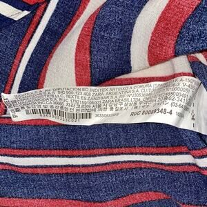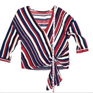Zara Nautical Red White Blue Striped Drape Tie Waist V-Neck Top Size Small